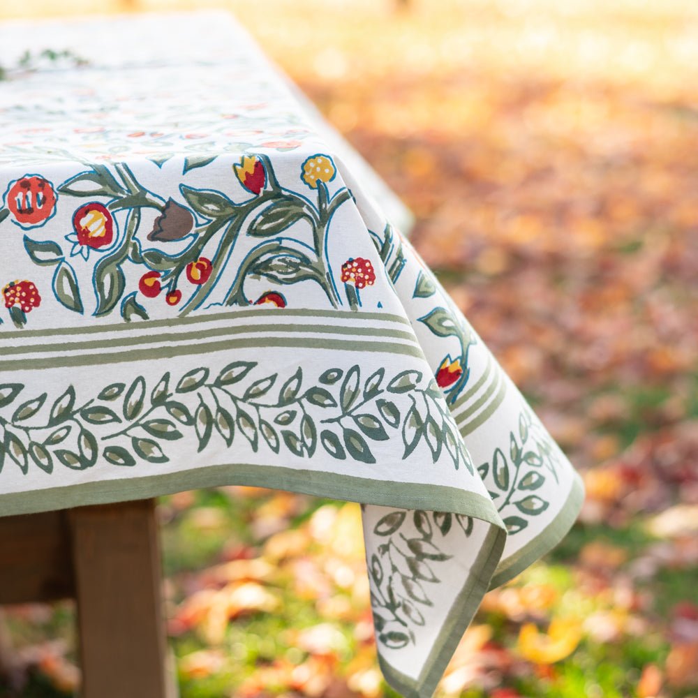 Embroidered Hunt Scene Red Ribbon Table Runner