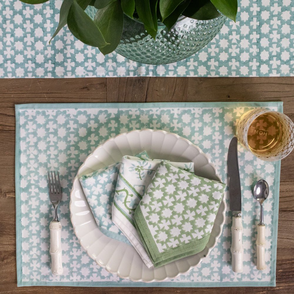 India Hicks Home Cuban Cross Soft Sage Napkin | Set of 4