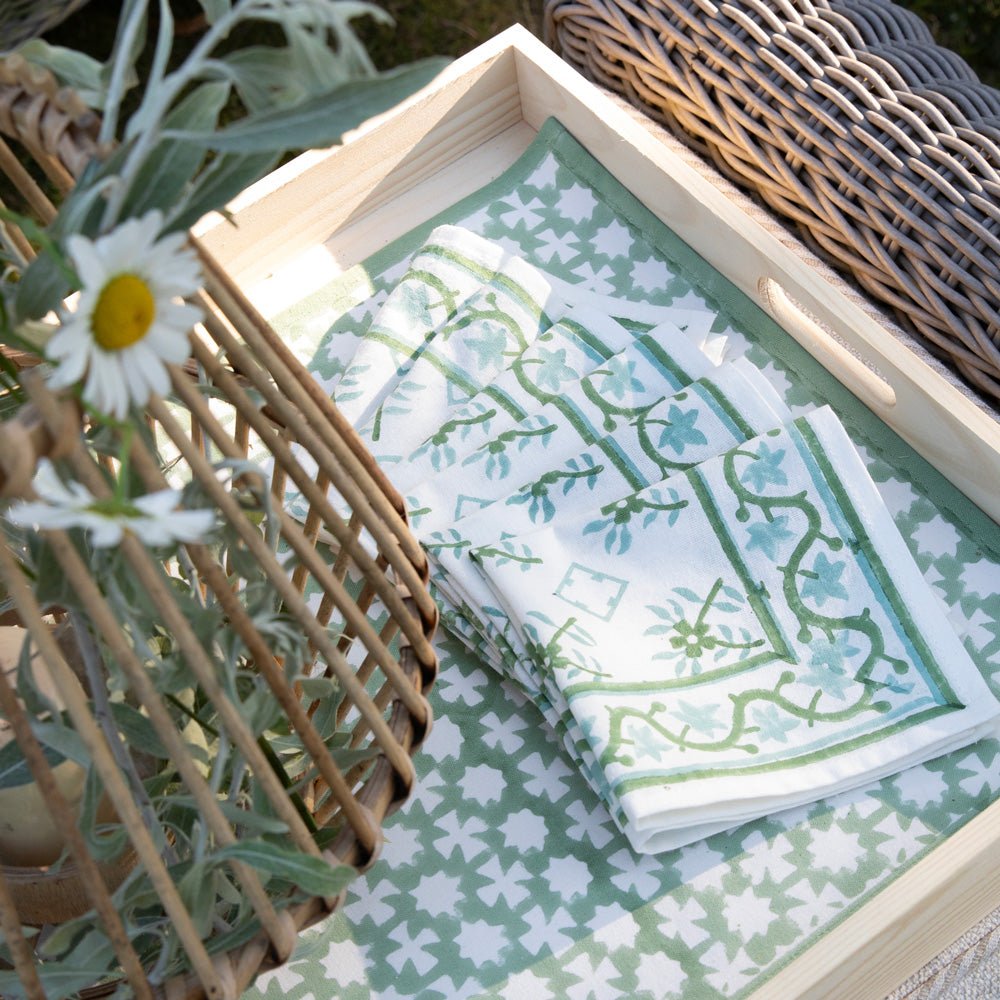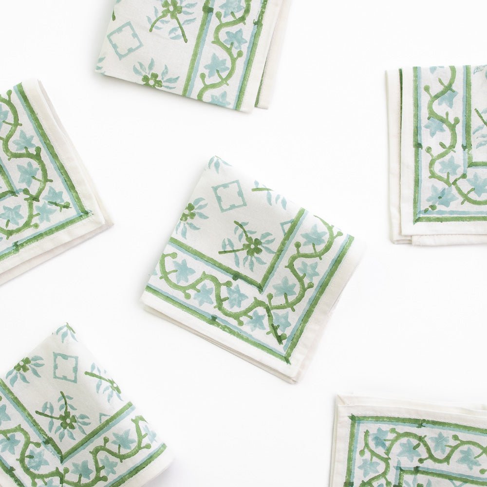 India Hicks Home Cuban Flower Palladian Blue & Soft Sage Napkin | Set of 4