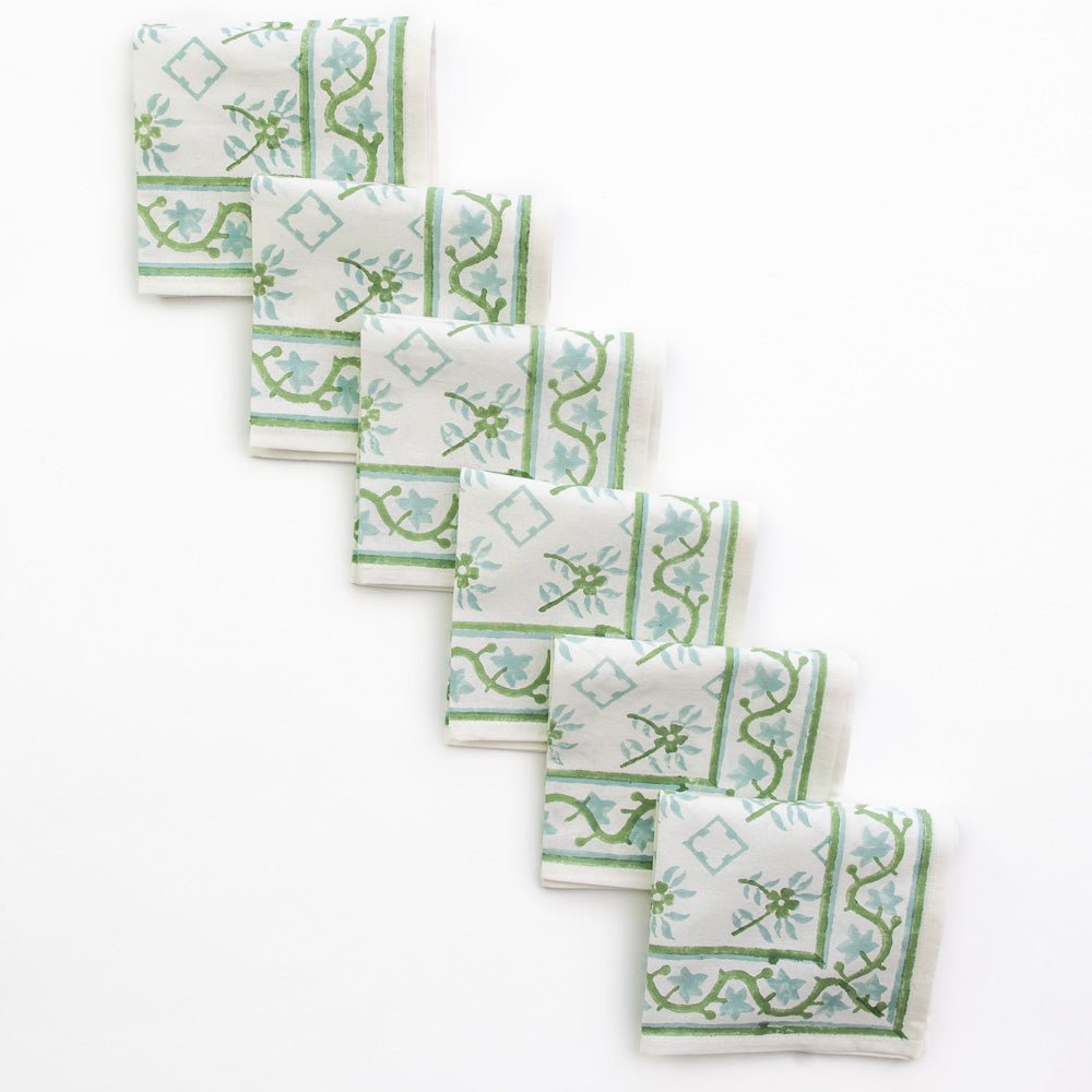 India Hicks Home Cuban Flower Palladian Blue & Soft Sage Cocktail Napkin | Set of 6