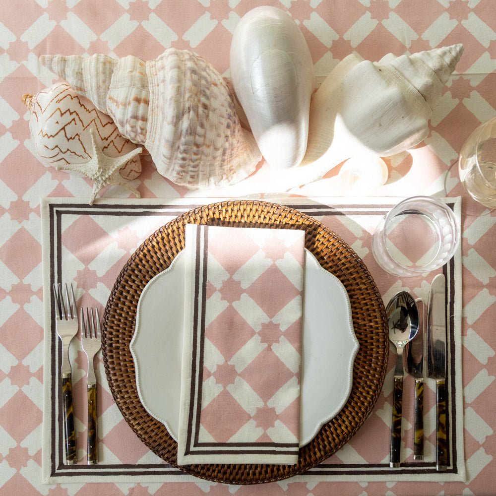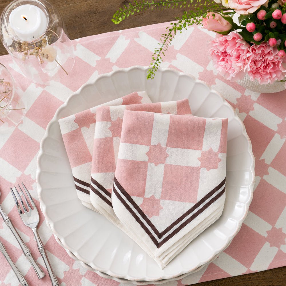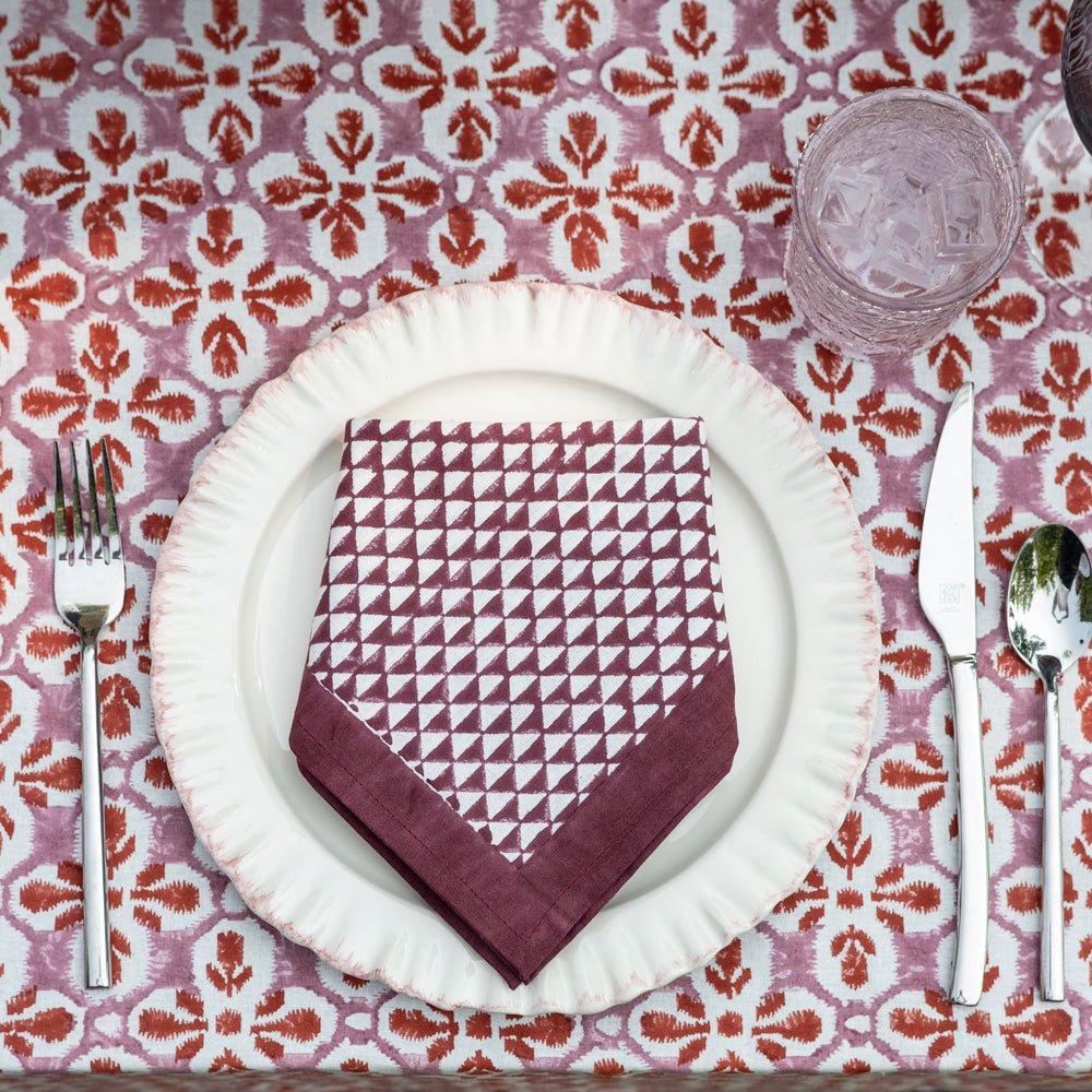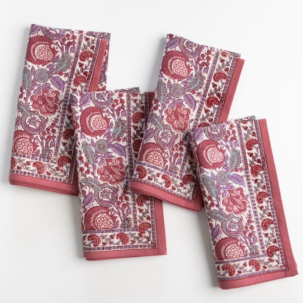 Our classic hand block-printed cotton napkins and elegant linen napkins are timeless Pomegranate staples. Featuring refreshing floral and geometric prints, each cotton napkin is hand-printed in vibrant colors, while our linen napkins are beautifully embellished with embroidery, scalloped edges, and decorative borders. Crafted by skilled artisans, these 100% cotton and natural linen napkins add the perfect hostess touch to everyday meals or festive gatherings. As signature pieces within our expanding table linens collection, Pomegranate napkins bring color, craftsmanship, and distinctive style to any tablescape.