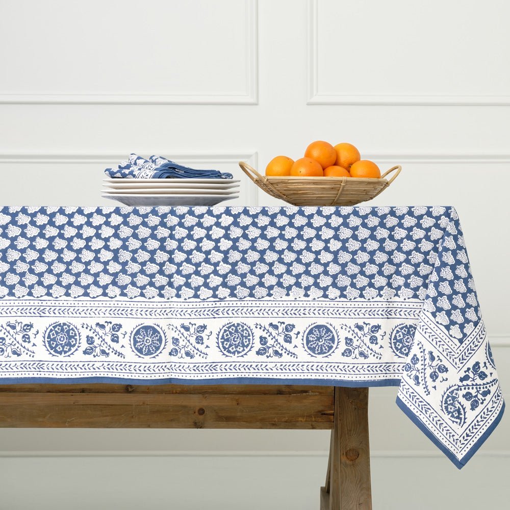 Our blue and white collections feature timeless hand block-printed table linens and coordinating tableware that never go out of style. From elegant tablecloths and chic cloth napkins to placemats, runners, melamine dishes, and glassware, each piece is crafted for beauty and practicality. With shades ranging from classic navy to soft baby blue, these versatile designs complement any décor and occasion. Whether you’re hosting a formal dinner party or a casual brunch, our blue and white linens and accessories are easy to style, easy to care for, and always effortlessly elegant.