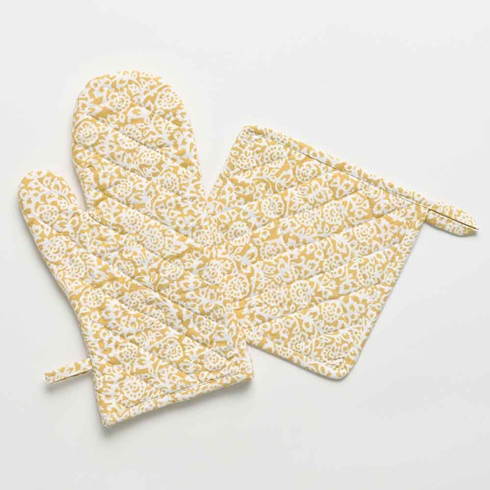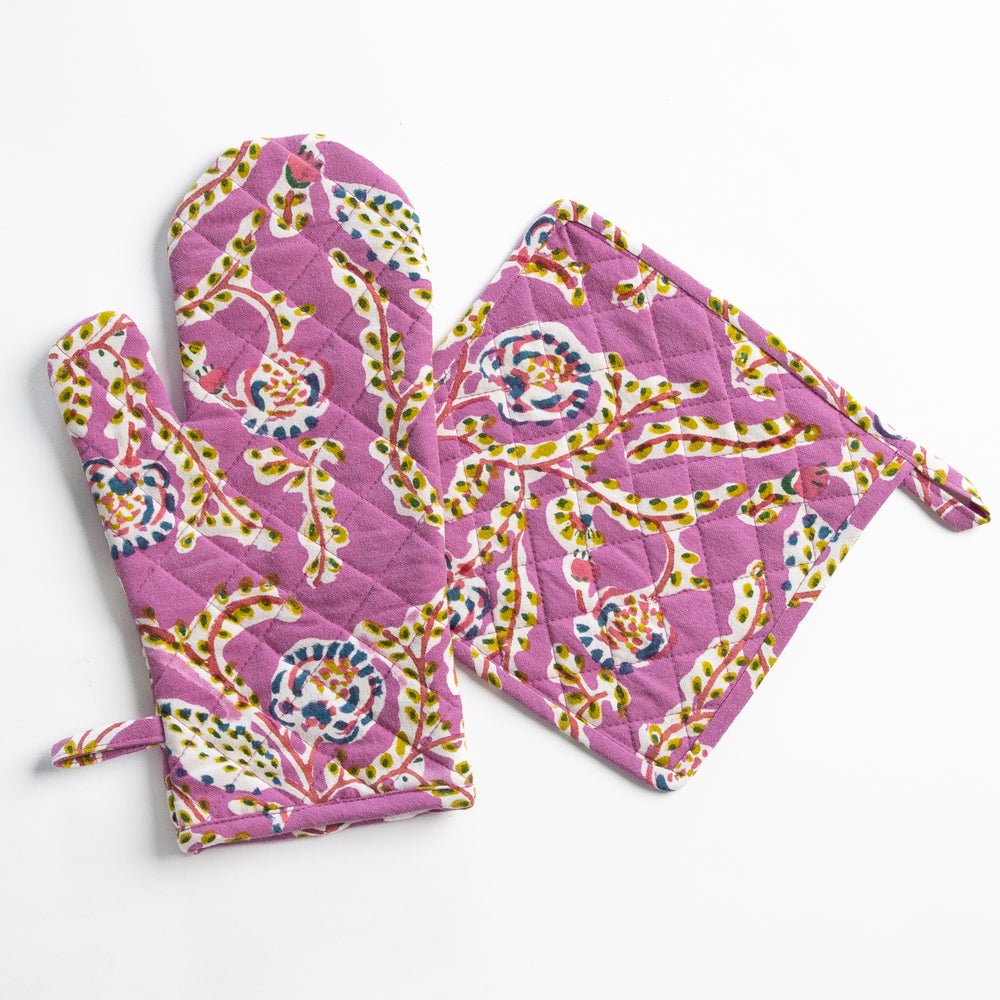 Protect your hands in style with our oven mitts and potholders collection. Designed for everyday cooking and baking, Pomegranate oven mitts combine fashion with function, offering reliable heat protection with artisan-crafted style. Each set includes durable, quilted mitts and coordinating potholders in a variety of colors and block-printed patterns to suit any kitchen décor. Whether you’re pulling trays from the oven or serving dishes at the table, our oven mitts make cooking safe, stylish, and effortless.