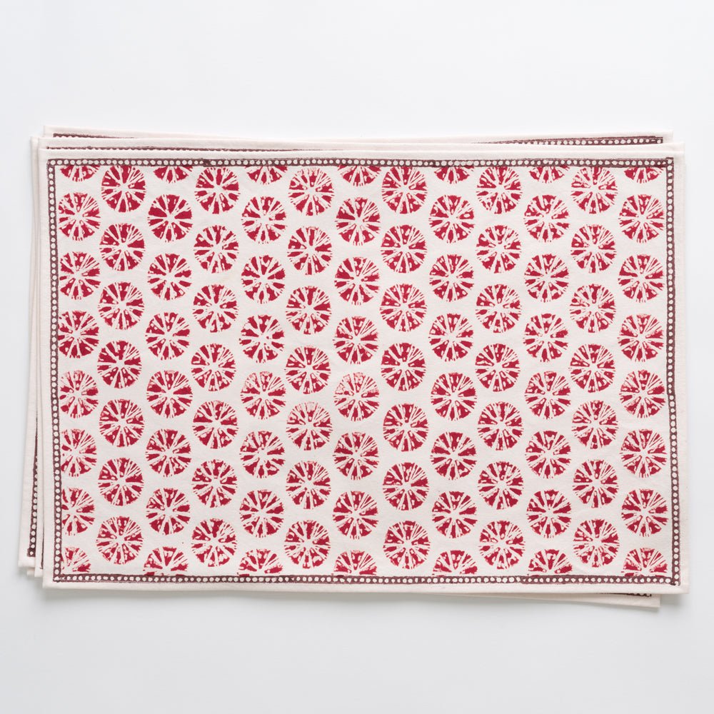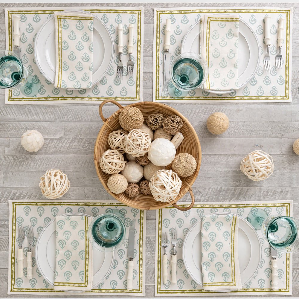 Pomegranate placemats are available in exclusive hand block-printed cotton designs and natural woven materials, crafted to bring color, texture, and style to your table. Offered in a variety of prints, colors, and shapes, our placemats make it easy to create a fresh look for everyday dining or special gatherings. Whether paired with matching tablecloths and napkins or mixed for a layered tablescape, these durable and distinctive placemats are designed to brighten your table and elevate every meal.