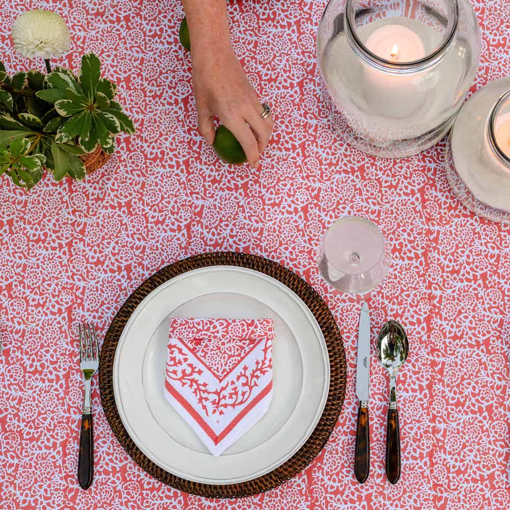 Shop everyday essentials for your table in our sale collection. Explore discounted tablecloths, cloth napkins, placemats, table runners, and accessories—handmade with the artisanal quality and vibrant block-printed designs Pomegranate is known for. From timeless table linens to versatile dining accents, these limited-quantity favorites blend beauty, function, and unbeatable value. Hurry—our sale items won’t last long, so shop now and bring home handcrafted style at a special price.