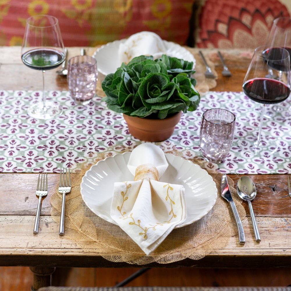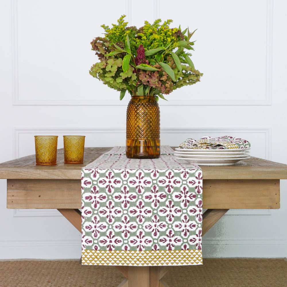 Pomegranate table runners bring a fresh pop of color and pattern to any dining table. Hand block-printed on 100% cotton with vibrant floral and geometric designs, our runners are the easiest way to refresh your decor and instantly change the look and feel of a room. Perfect for layering with matching tablecloths or napkins, each runner is artisan-crafted to add warmth, style, and personality to your tablescape—whether for everyday dining or special occasions.