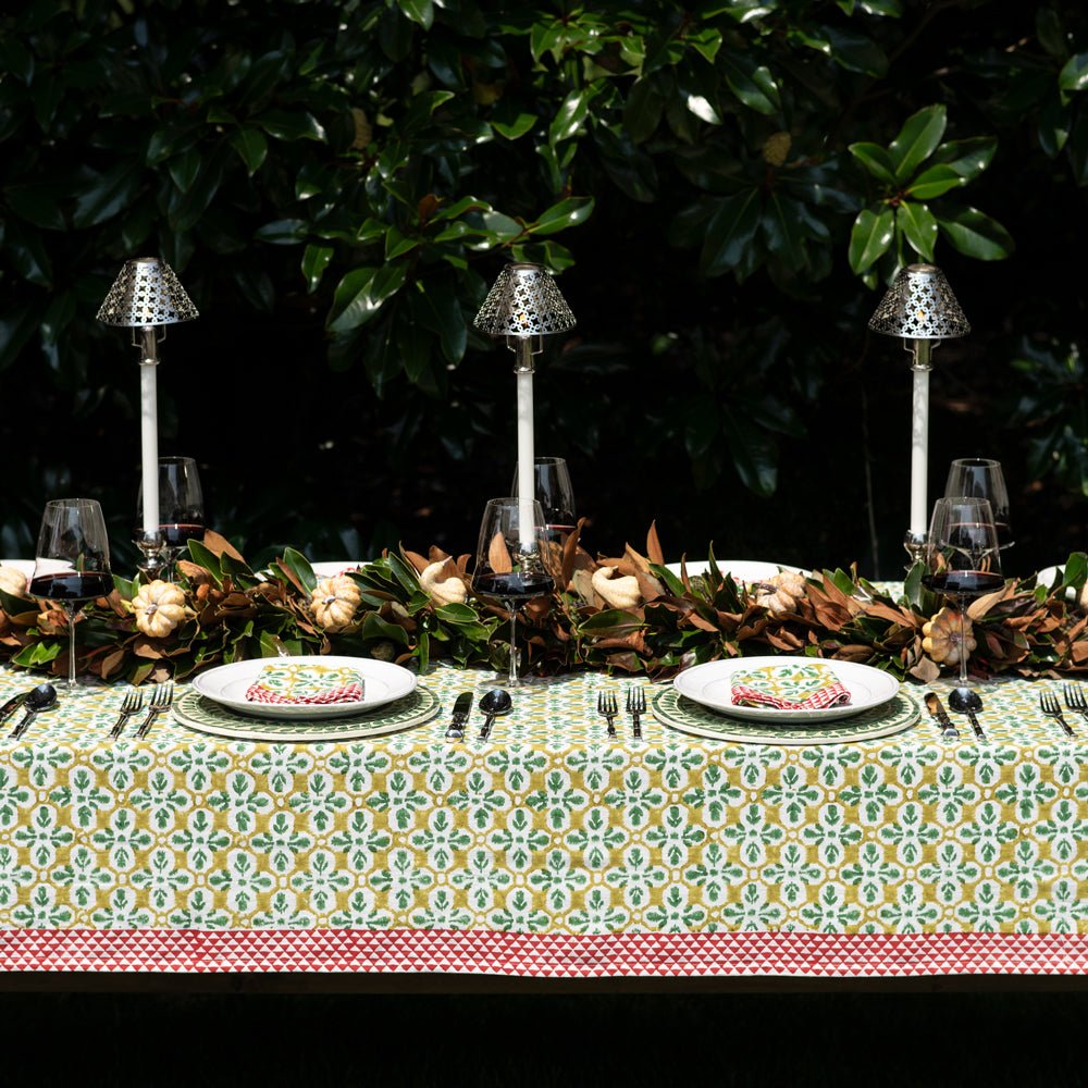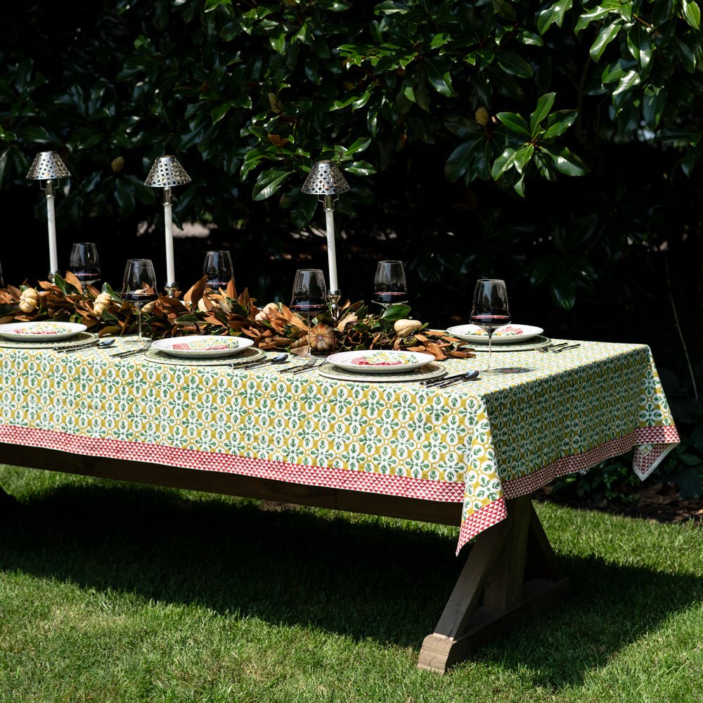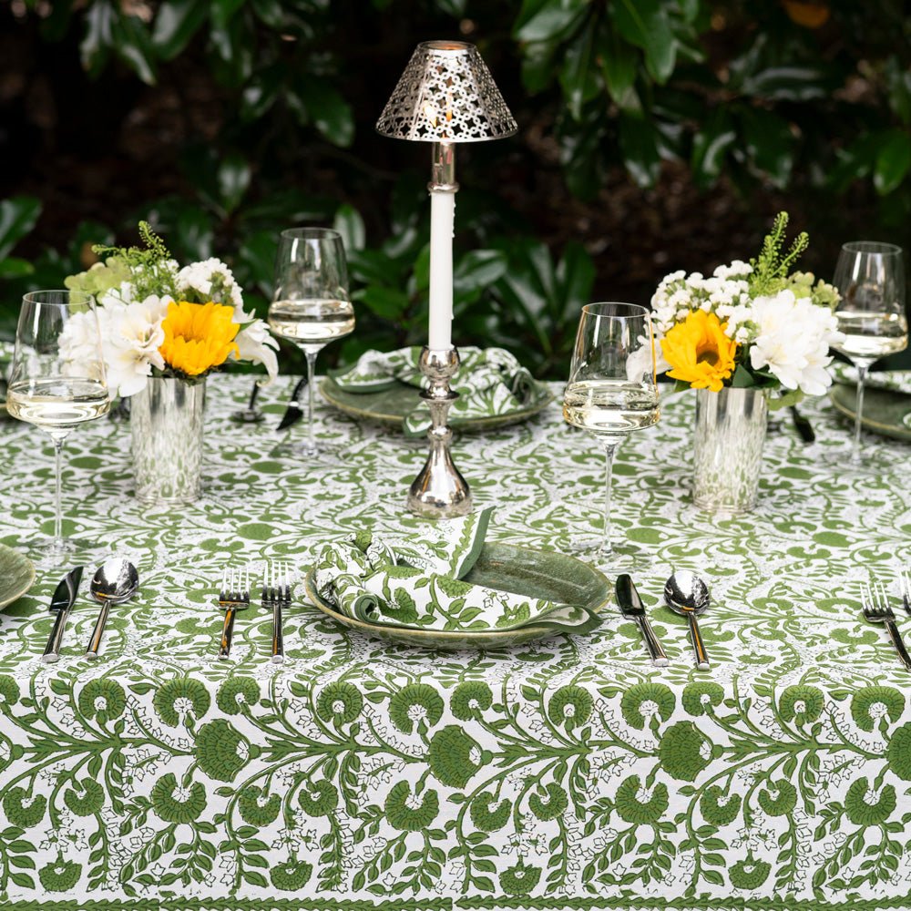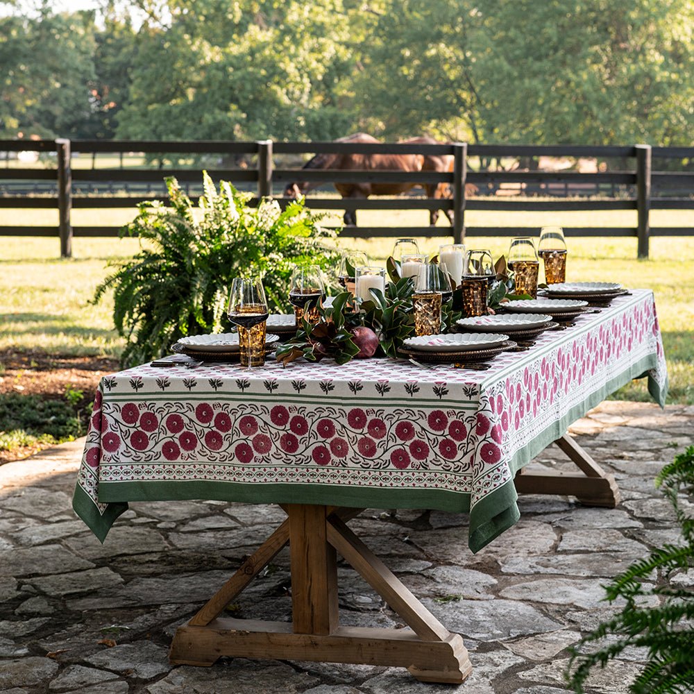 Set the scene for every gathering with our collection of artisan-crafted tablecloths. From richly hand block-printed patterns to intricately embroidered designs, each piece is thoughtfully made to bring beauty and character to your table. Whether you’re dressing up a special occasion or elevating everyday meals, our tablecloths add a layer of timeless style and craftsmanship that transforms any setting. Designed to mix, match, and make memories, they’re heirloom-quality linens meant to be enjoyed season after season.