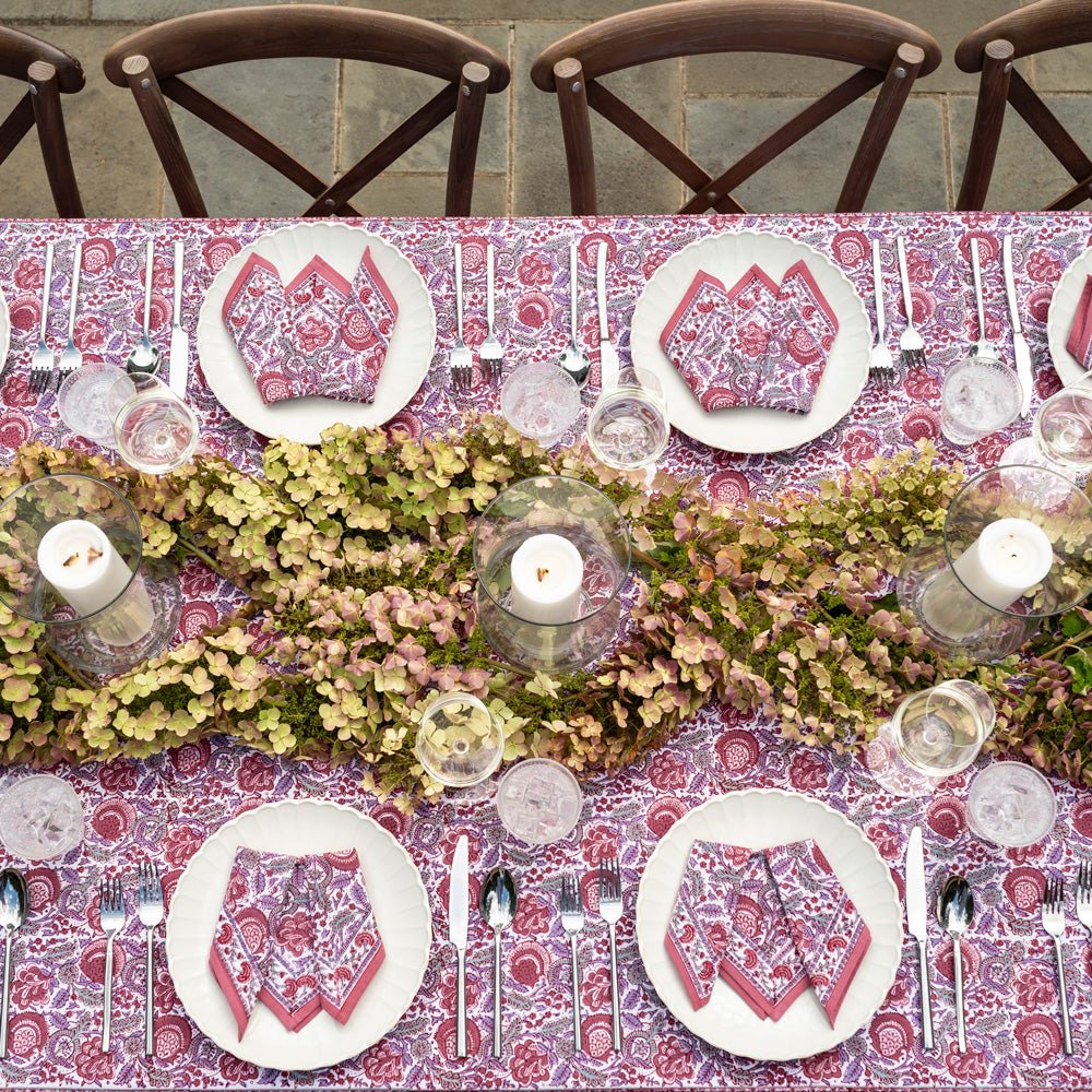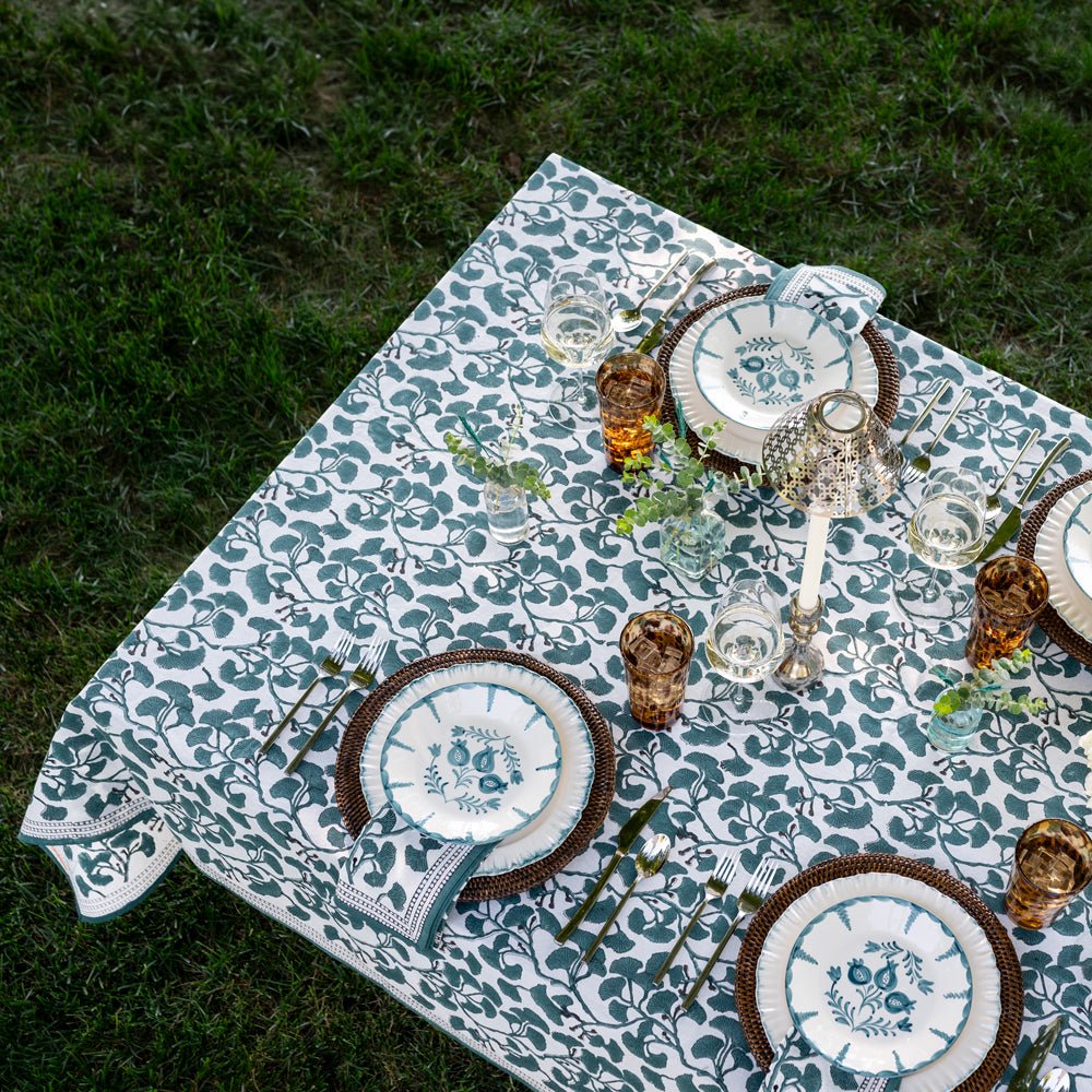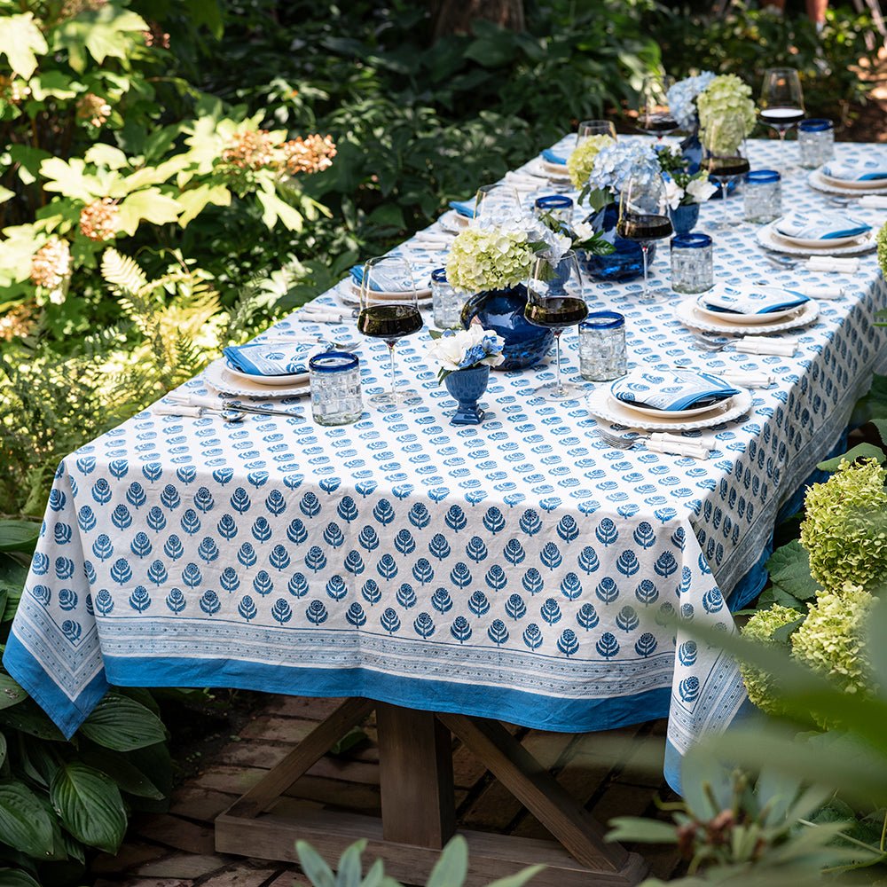 Set the scene for every gathering with our collection of artisan-crafted tablecloths. From richly hand block-printed patterns to intricately embroidered designs, each piece is thoughtfully made to bring beauty and character to your table. Whether you’re dressing up a special occasion or elevating everyday meals, our tablecloths add a layer of timeless style and craftsmanship that transforms any setting. Designed to mix, match, and make memories, they’re heirloom-quality linens meant to be enjoyed season after season.