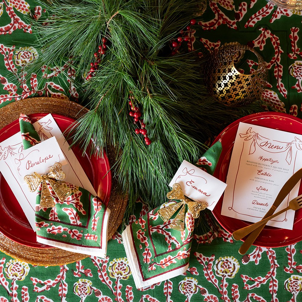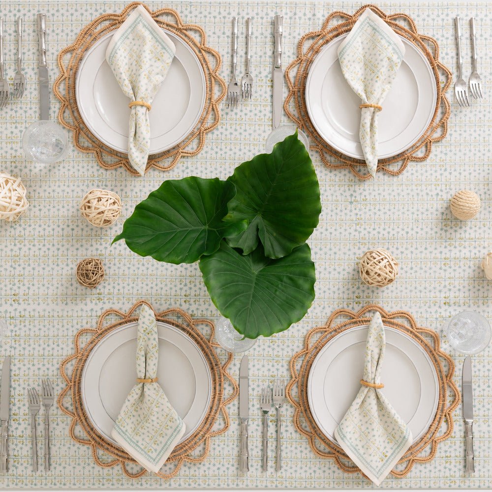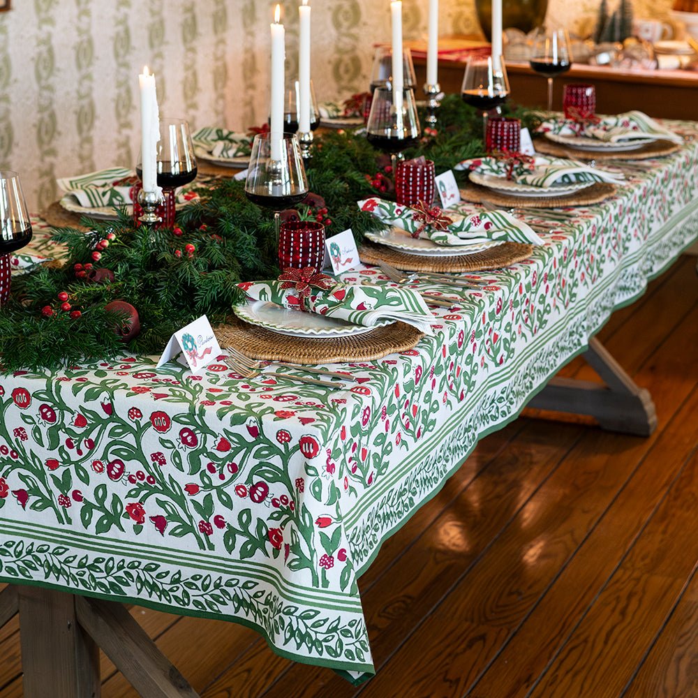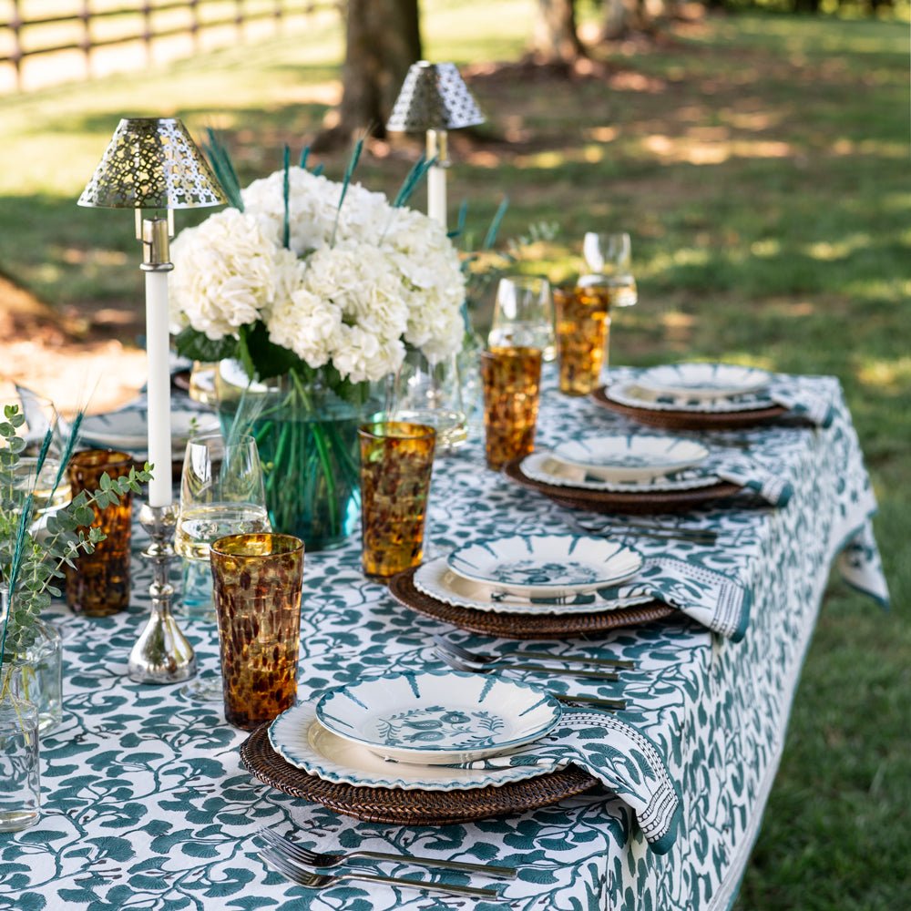 Set the scene for every gathering with our collection of artisan-crafted tablecloths. From richly hand block-printed patterns to intricately embroidered designs, each piece is thoughtfully made to bring beauty and character to your table. Whether you’re dressing up a special occasion or elevating everyday meals, our tablecloths add a layer of timeless style and craftsmanship that transforms any setting. Designed to mix, match, and make memories, they’re heirloom-quality linens meant to be enjoyed season after season.