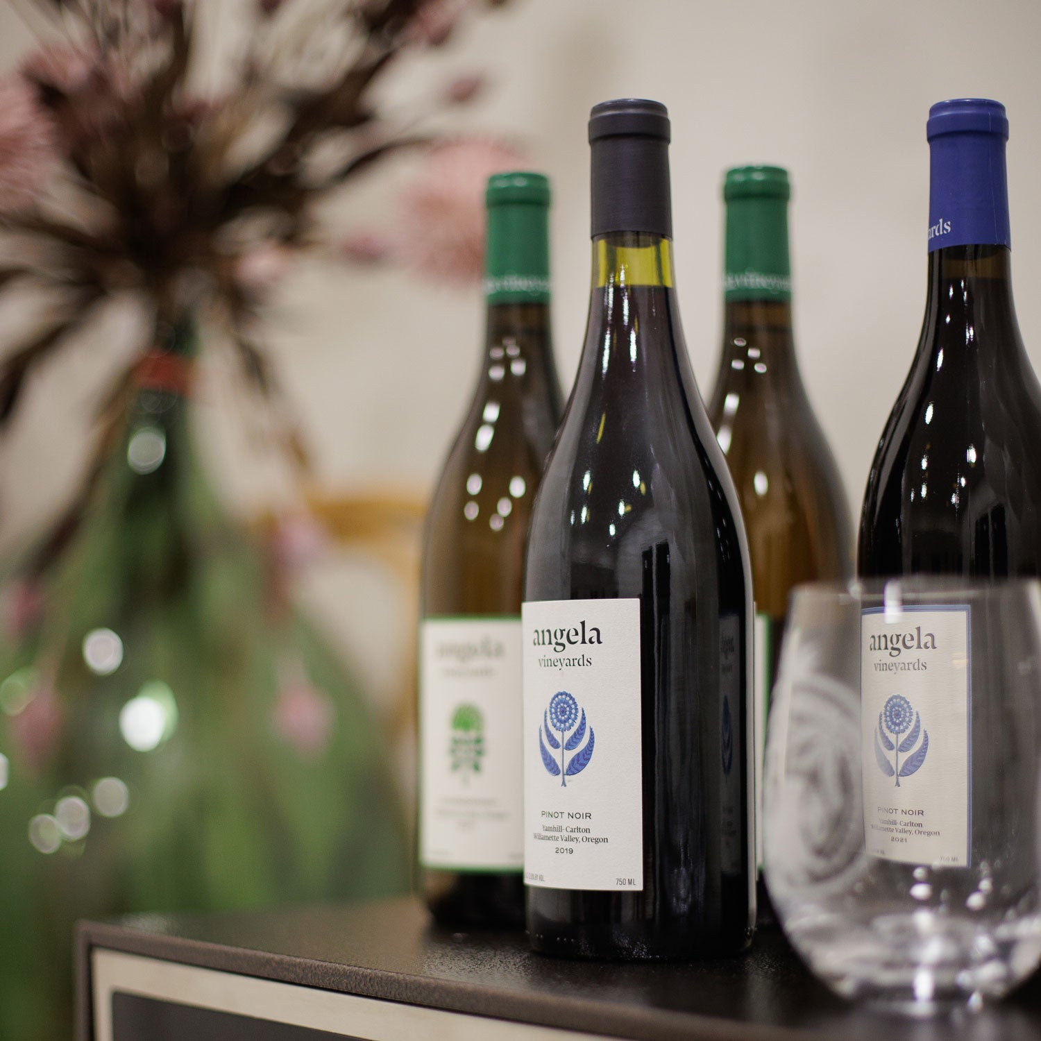 Enjoy Angela’s own Angela Vineyards wine from the Willamette Valley in Oregon through a unique “Pour Pass” system. Choose from various pour sizes by the glass or purchase a bottle to enjoy in-store or at home.