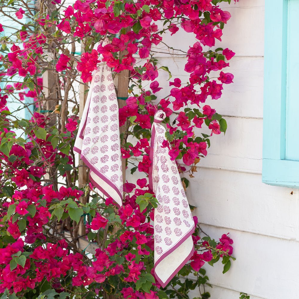 Introducing our Anika Fuchsia Napkins, a charming addition to your tableware collection. Each napkin is meticulously hand block printed with a dainty floral design, adding a touch of sophistication to your dining experience. Made from high-quality cloth, these napkins are both stylish and practical, making them ideal for any occasion.