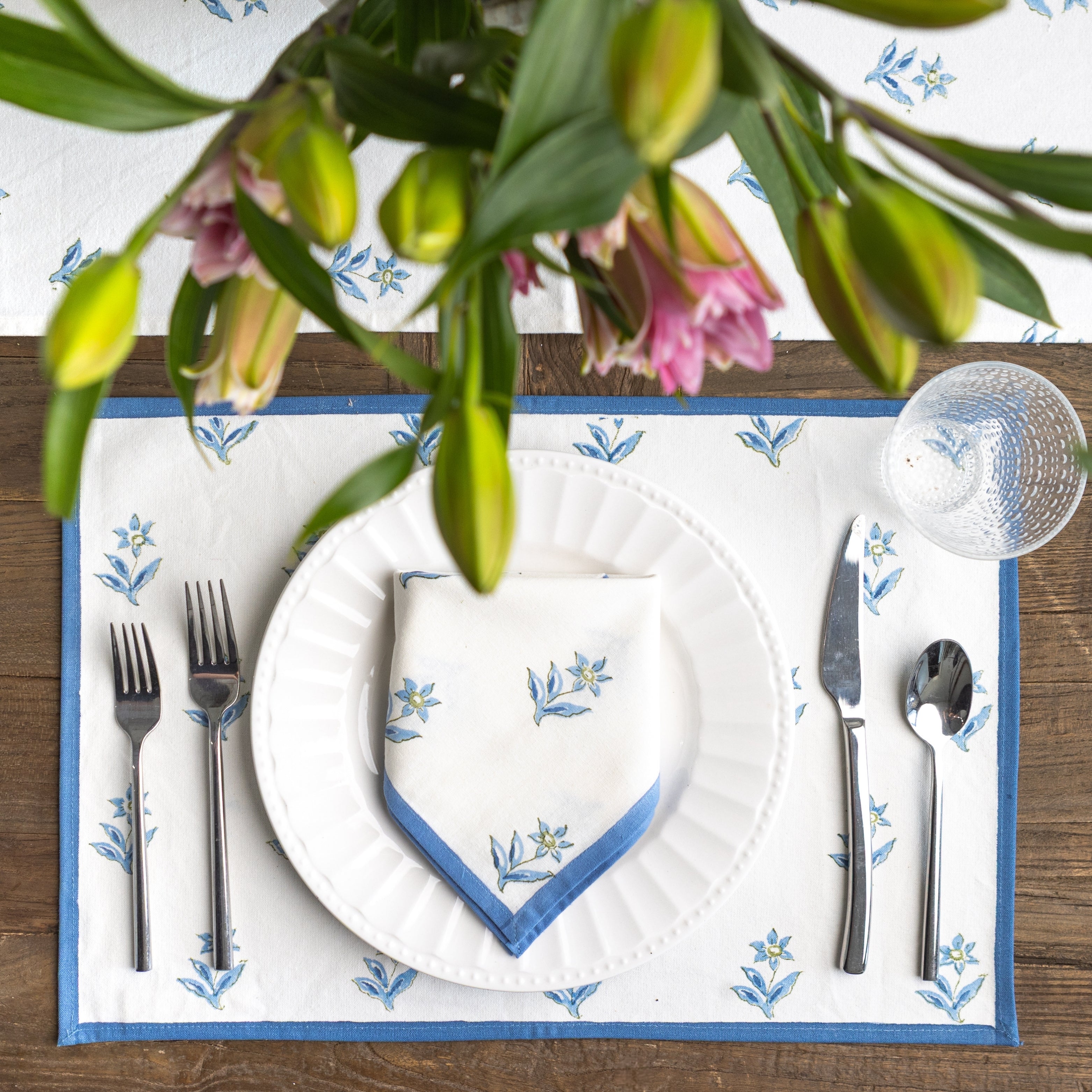 Delicate florals bring charm and romance to the table. The Sophie Floral Placemats are hand block printed on cotton, perfect for layering with coordinating prints in the collection. Their versatile scale makes them easy to pair with both patterned and solid dinnerware.