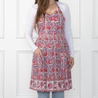 Add a touch of bohemian charm to your kitchen with the Bohemian Floral Dusty Rose Apron. This apron features a hand block printed design that artfully blends deep rose & muted lilac tones, creating a captivating floral pattern. Made from 100% cotton, this apron is as functional as it is beautiful, offering a comfortable fit while protecting your clothes from spills and splatters.