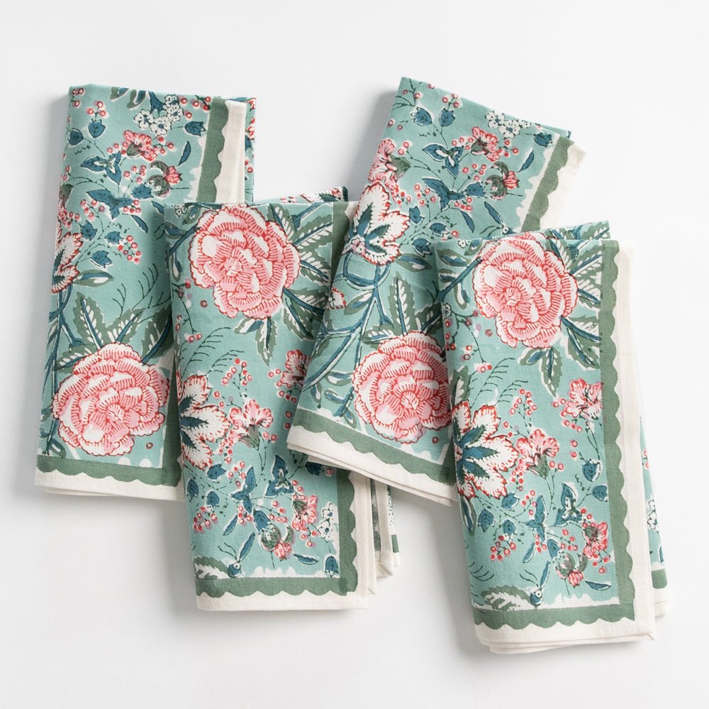 Butterfly Garden Aqua & Rose Napkin | Set of 4
