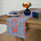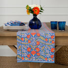 Add a touch of elegance to your table with our Cactus Flower Blue & Poppy Table Runner. The beautiful blue background is adorned with stunning orange flowers, creating a vibrant and eye-catching centerpiece for your table. Perfect for adding a pop of color to any dining experience.
