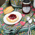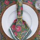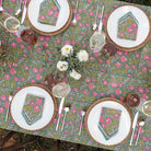Cool and earthy, this lush botanical green print highlighted with pink blossoms and citrine leaves is perfect for day to night. Sit around your table with boho chic rich hues. These fabulous napkins will recharge and update your table. Coordinating tablecloths, table runners and placemats complete the set.