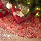 Bring warmth and artisanal charm to your holiday décor with our Cactus Flower Red Quilted Tree Skirt. Hand block printed in a festive floral pattern and finished with meticulous quilting, this heirloom-quality piece adds texture and color beneath your tree. Crafted from soft cotton and lightly padded for structure, it drapes beautifully to frame your presents and ornaments with timeless elegance.