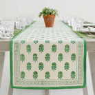 Our latest exclusive green and white print is refreshing yet cool, traditional and exotic, all at the same time. Cheer up your table with our new block printed chardonnay print, a refreshing updated Indian motif, exclusively designed in collaboration with Angela Vineyards - the award winning Portland, Oregon winery.