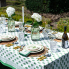 Our latest exclusive green and white print is refreshing yet cool, traditional and exotic, all at the same time. Cheer up your table with our new block printed chardonnay print, a refreshing updated Indian motif, exclusively designed in collaboration with Angela Vineyards - the award winning Portland, Oregon winery. Shouldn't everyone match their tablecloth with their wine?