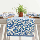 Blue and white coral and shells hand-painted and block printed to elevate your coastal home. For beachcombers and island dwellers, this exclusive hand block printed table runner is refreshing and refined; a lovely addition to liven up your table and home. Dress your table in our newest seaside print and pair it with the matching napkins and tablecloths to complete the look.