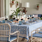 Blue and white coral and shells hand-painted and block printed to elevate your coastal home. For beachcombers and island dwellers, this exclusive hand block printed tablecloth is refreshing and refined; a lovely addition to liven up your table and home. Dress your table in our newest seaside print and pair it with the matching napkins, placemats and table runners to complete the look.