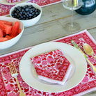 Refreshing spring blossoms! Cheer up the family table with beautiful pink and crimson floral block printed cotton placemats. Our exclusive blossoms collection is the perfect way to refresh your table for spring and summer--mix and match for an effortless look that will brighten up your home!