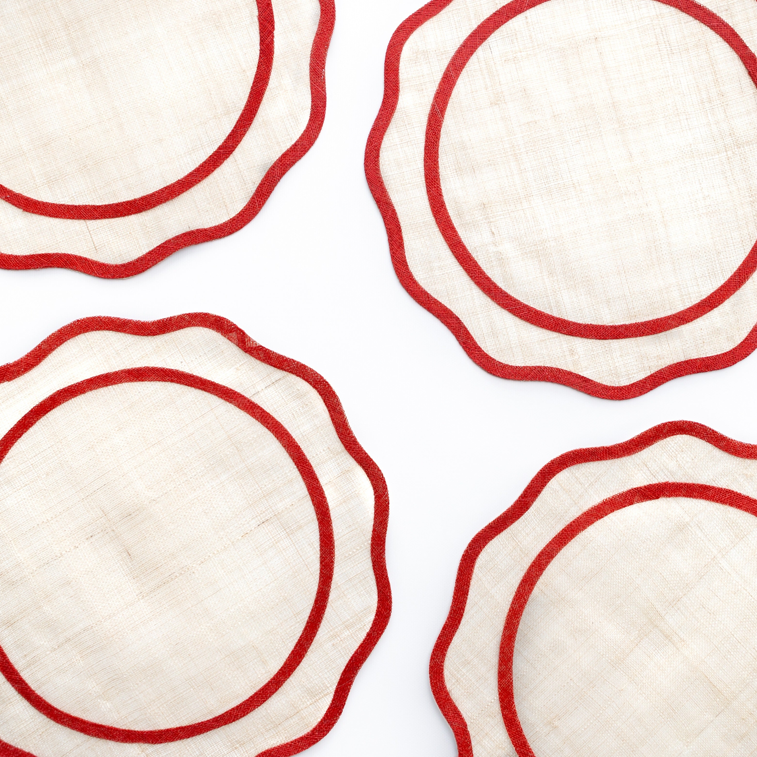 Our Deep Red scalloped round woven placemats will add just the right amount of elegance to your table. These chic placemats wipe clean with a damp cloth so they are practical for everyday use, yet they remain elegantly refined for your finest dinner party.