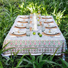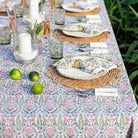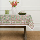 Our Dove & Cypress Pink & Green Tablecloth features a captivating print of birds, berries, green branches, and unique shapes and lines in a delightful palette of pink and green, this tablecloth is a true statement piece. Crafted from premium cotton, it drapes elegantly over your table, creating a stunning backdrop for any meal. Whether you're hosting a formal dinner or a casual brunch, this tablecloth will add a touch of nature-inspired charm to your dining experience.