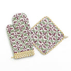 Protect your hands in style with the Fleur de Lis Antique Jade Oven Mitt & Pot Holder Set. Featuring the stunning Fleur de Lis design in jade green, these kitchen essentials are as beautiful as they are functional. Made from 100% cotton with quilted padding for extra protection, this hand block printed set ensures you can handle hot dishes with ease and elegance.
