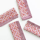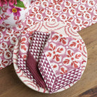 Elevate your dining experience with the delicate charm of our Fleur de Lis Rose Napkins. This set of four napkins features a hand block printed Fleur de Lis pattern in soft rose pink tones, beautifully framed by a geometric purple border. Made from 100% cotton, these napkins offer both elegance and functionality, perfect for adding a romantic touch to your table. Machine washable and versatile, they effortlessly blend classic design with a contemporary twist.