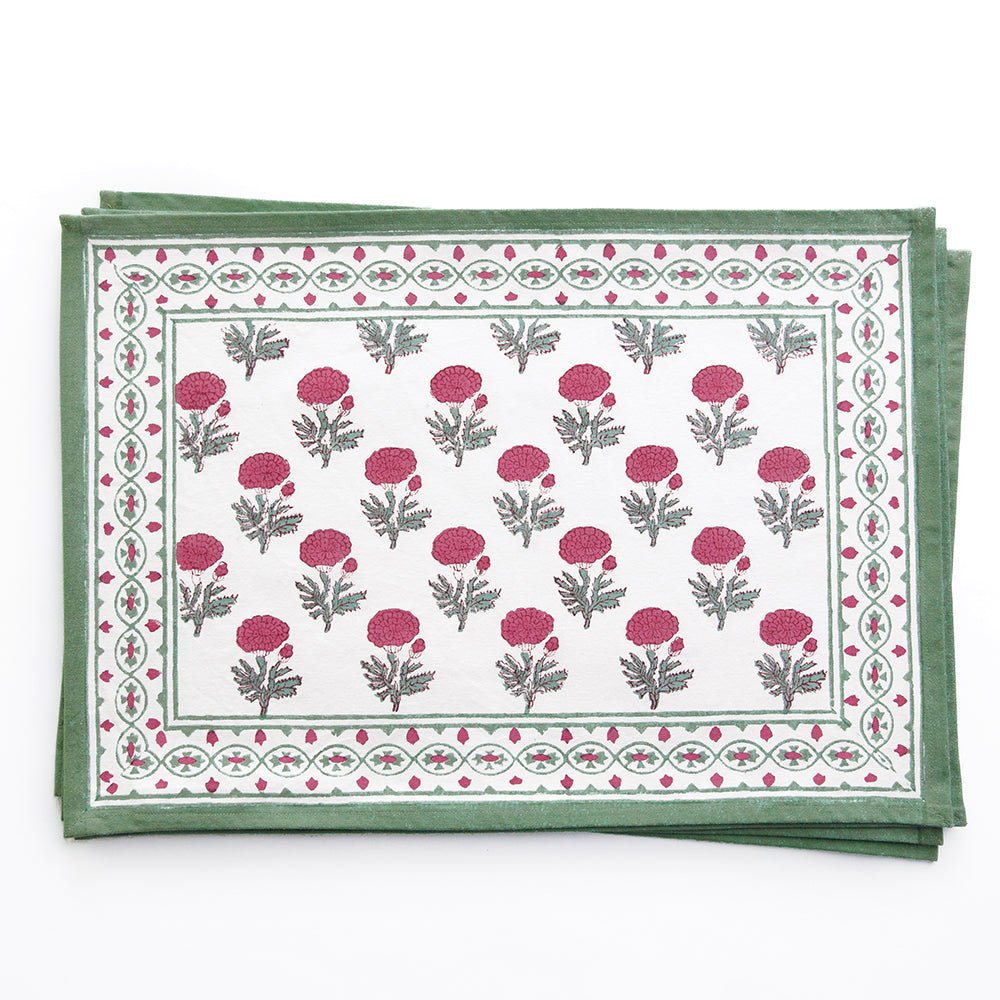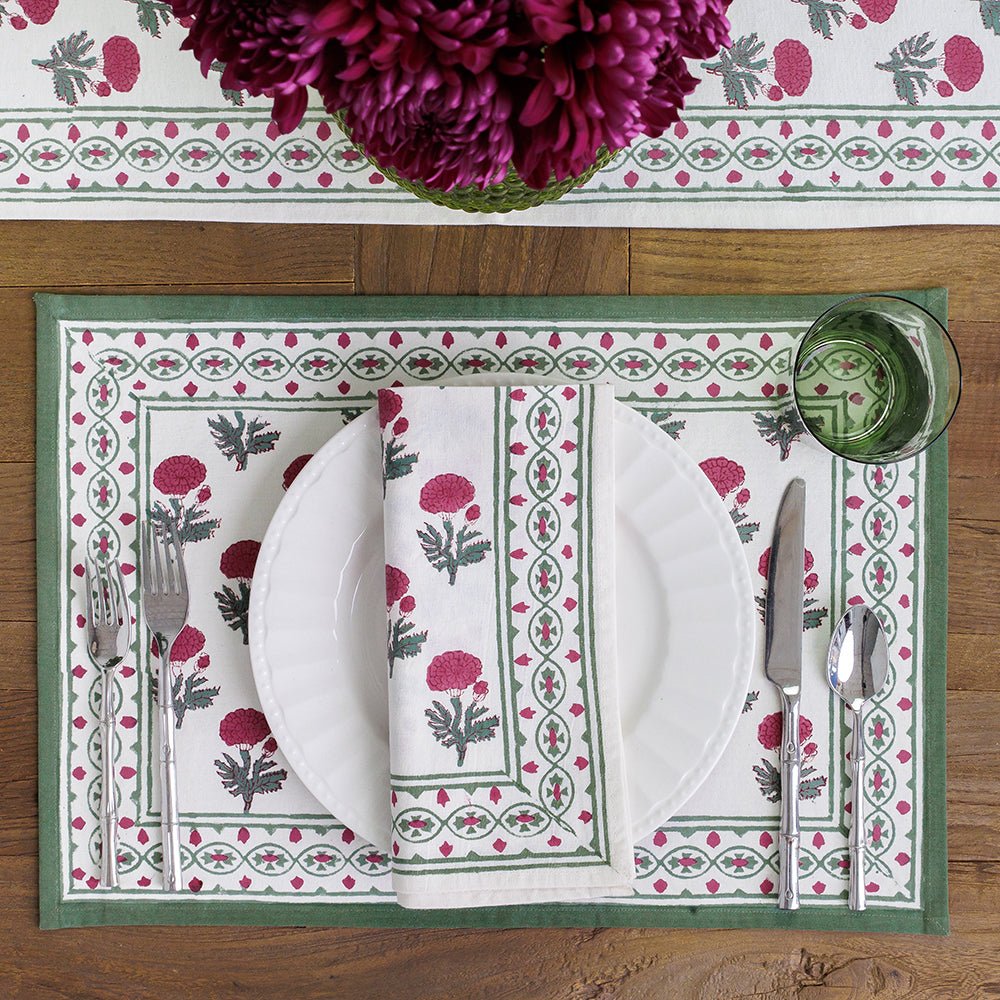 Named after an ancient and holy city in India, our Gaya Rose placemats capture the splendor, mystery and beauty of the Asian subcontinent. Printed by hand using rich dyes and carved wooden blocks to achieve a one-of a-kind design, these cotton dinner napkins make a striking display on your formal tabletop.