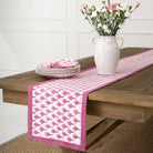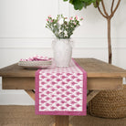 Let your table take flight with our Geo Feather Fuchsia Table Runner! Hand block printed with a bohemian feather pattern, this runner adds a touch of whimsy to any meal. The vibrant fuchsia color brings a bold pop to your table decor.