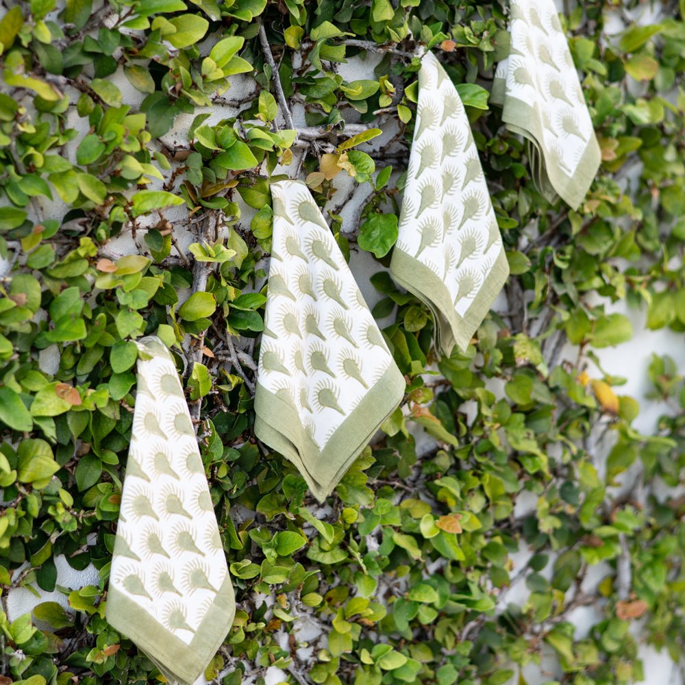 Get ready to add a touch of bohemian flair to your dining table with our Geo Feather Moss Napkin set! These hand block printed cloth napkins feature a playful feather design in a gorgeous moss green color.