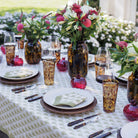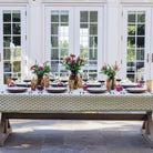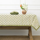 Add a unique touch to your dining experience with our Geo Feather Moss Tablecloth. Hand block printed with a playful bohemian feather pattern in a beautiful moss green, this tablecloth will surely brighten up your table setting & add a touch of creativity and charm to your dining experience!