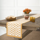 Add a touch of bohemian charm to your dining table with our Geo Feather Ochre Table Runner. Hand block printed with a playful feather design in a warm ochre color, this runner will elevate your dining experience. Perfect for adding a pop of unique style to any meal!
