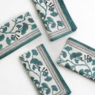 Add a pop of elegance to your table with our Ginkgo Teal Napkin set. Each napkin is meticulously hand block printed with a ginkgo leaf pattern in rich teal tones. Made from soft cotton, these napkins are perfect for casual meals or more formal gatherings. Durable and easy to care for, they’re a stylish way to elevate everyday dining or special events.