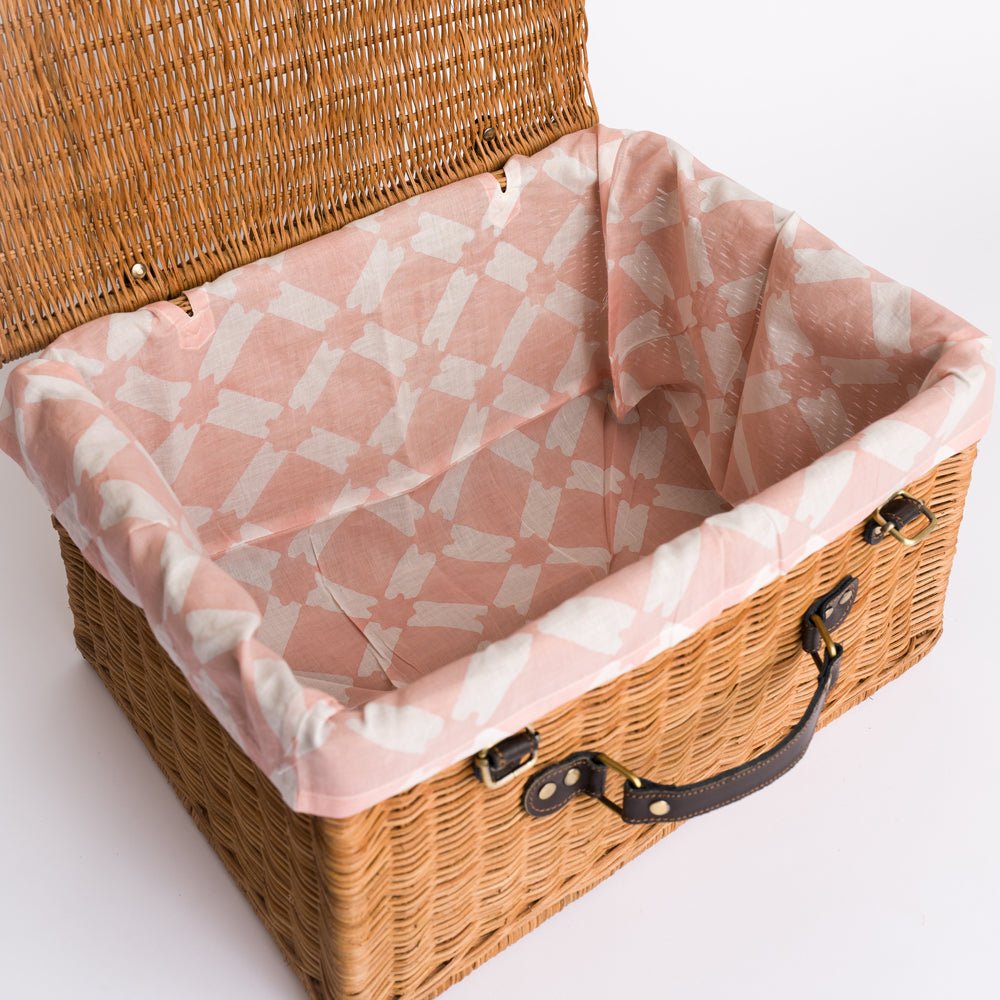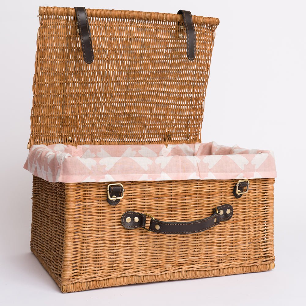 Woven Rattan Picnic Basket with 100% Cotton Liner.