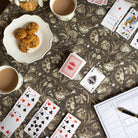 This tablecloth transforms your table into a bold backdrop of card motifs and board patterns in rich chocolate. The all-over print sets the stage for gatherings that balance fun with style, making every meal feel like a winning round. Crafted to layer with ease, it pairs beautifully with simple dinnerware or vibrant accents. Elevate game night or everyday dining with this dramatic design.