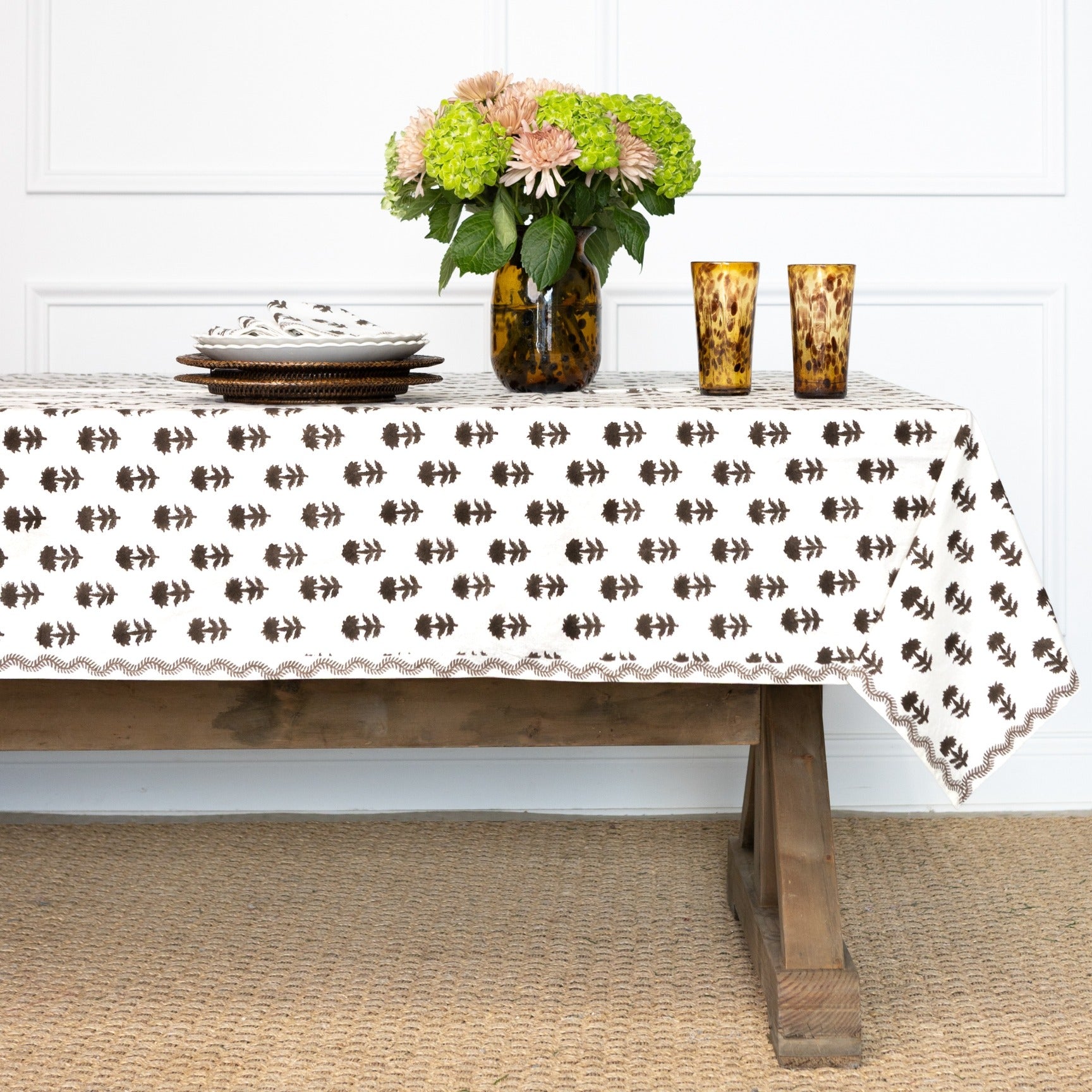 India Hicks Home Winter Flower Chocolate Tablecloth