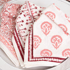 This beautiful mixed set of 100% cotton hand blocked printed napkins in blush are intended to be mixed haphazardly together, just as our families are.