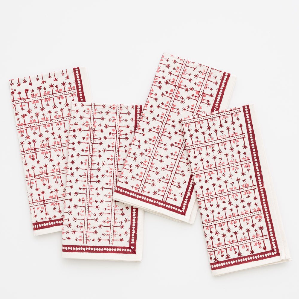 This beautiful set of 100% cotton hand blocked printed napkins in Palm Avenue Blush is intended to be mixed haphazardly together with the other patterns, just as our families are.