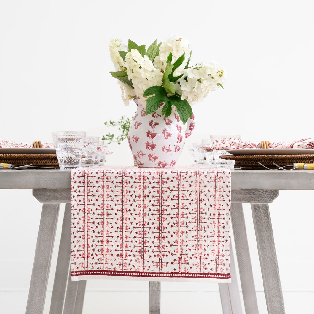 This beautiful 100% cotton, hand blocked printed Table Runner in Palm Avenue Blush is intended to be mixed haphazardly together with the other patterns, just as our families are.