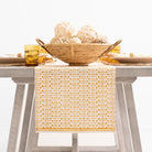 We seized the power of color and pattern to fill our Endless Summer Collection with optimism and joy. Our Palm Avenue Golden Table Runner is inspired by the GOLDEN sunshine of a Bahamas summer day, and patterns borrowed from the reassuring avenue of palm trees that have stood proud in our garden.