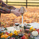 Our modern candlestick and cutwork shade comes in gold, bronze, and silver. This is a perfect addition for elevated, cozy gatherings around the table and home this fall and winter. Keep the candlestick shade or take it off, perfect for versatile entertaining.