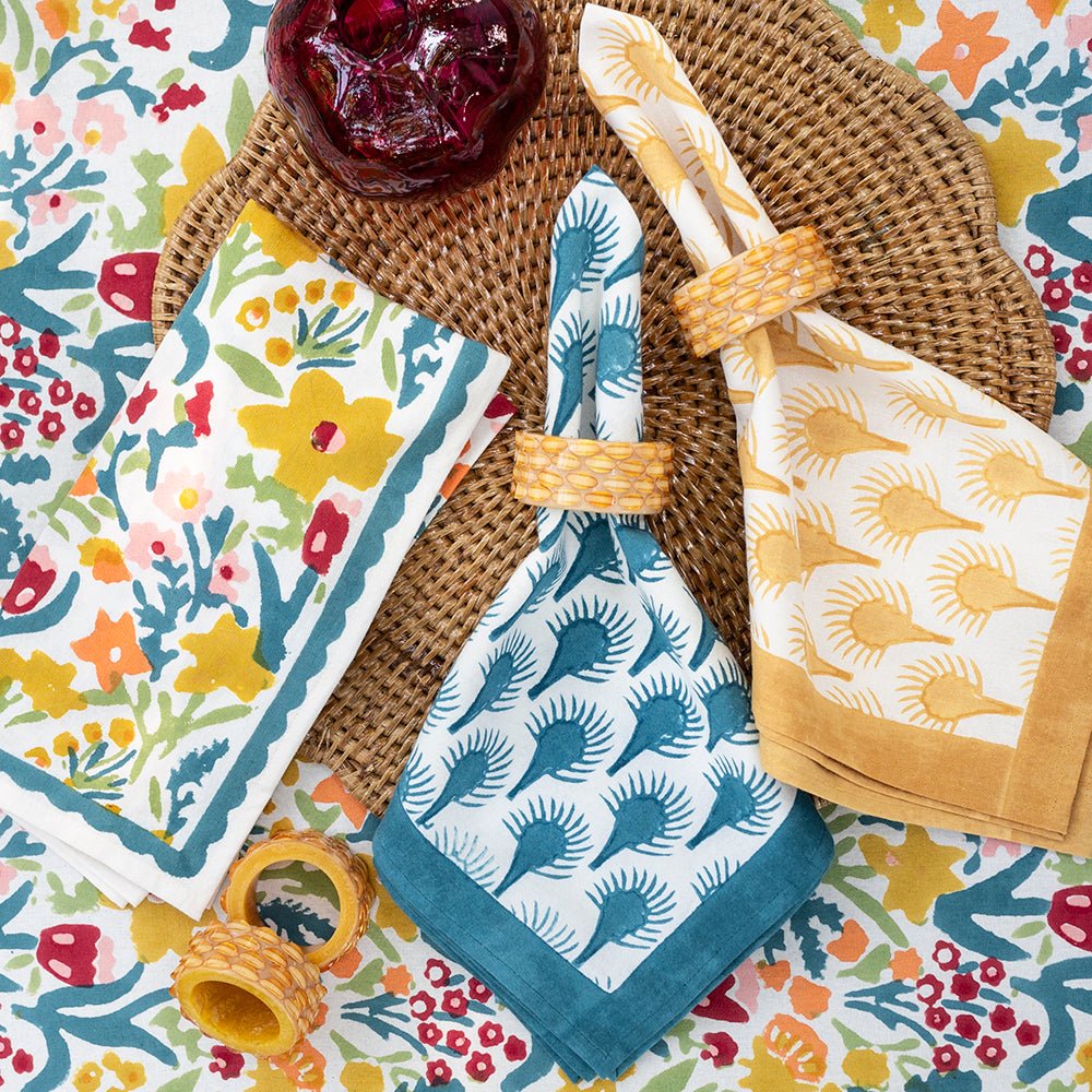 Mustard Round Resin Beaded Napkin Ring | Set of 4