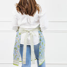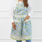 Tropical island palms and pineapples adorn this coastal themed light blue and green Pomegranate designed kitchen apron. Complement your kitchen with these refreshing and original kitchen textiles, that will liven up your cooking space. Complete the set with matching oven mitt set and tea towels.