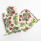 .This practical oven mitt and pot holder set will brighten up your kitchen and cheer up your day. Pair with matching apron and tea towels to complete the look.