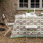 This cheerful hand block printed tablecloth will brighten up your table in assorted sizes to cover all sizes of tables. Perfect for casual everyday use as well as entertaining and gatherings with family and friends. Inside, outside, in the garden and up in the mountains, they fit in everywhere! Pair with matching placemats and napkins set to complete the elegant yet casual look. Add a pop of color to your home everyday.