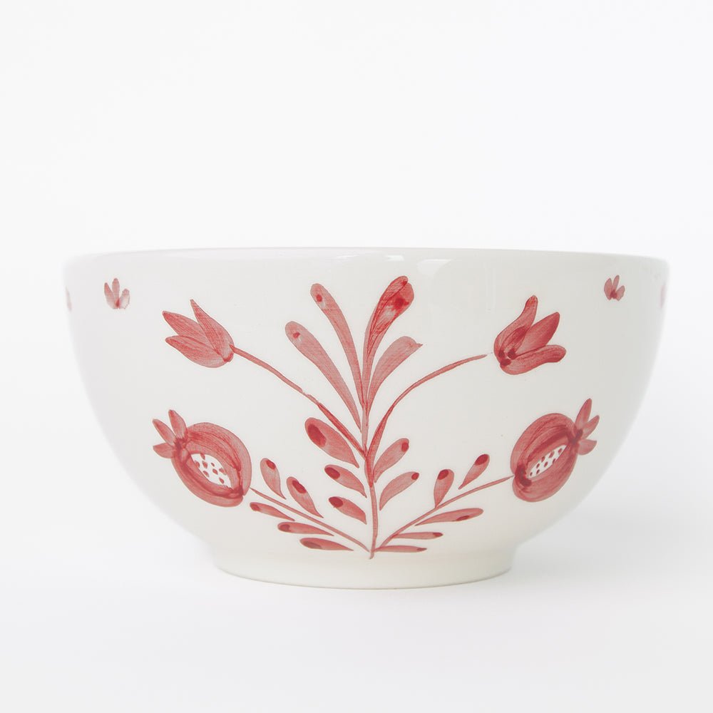 Serve soups, salads, or snacks in the charming Pomegranate Duet Rose Bowls. With hand-painted pomegranate motifs and botanical accents in a soft rose pink palette, these bowls add a fresh and elegant touch to any table. Available as a set of 2, these bowls are a perfect blend of style and practicality.