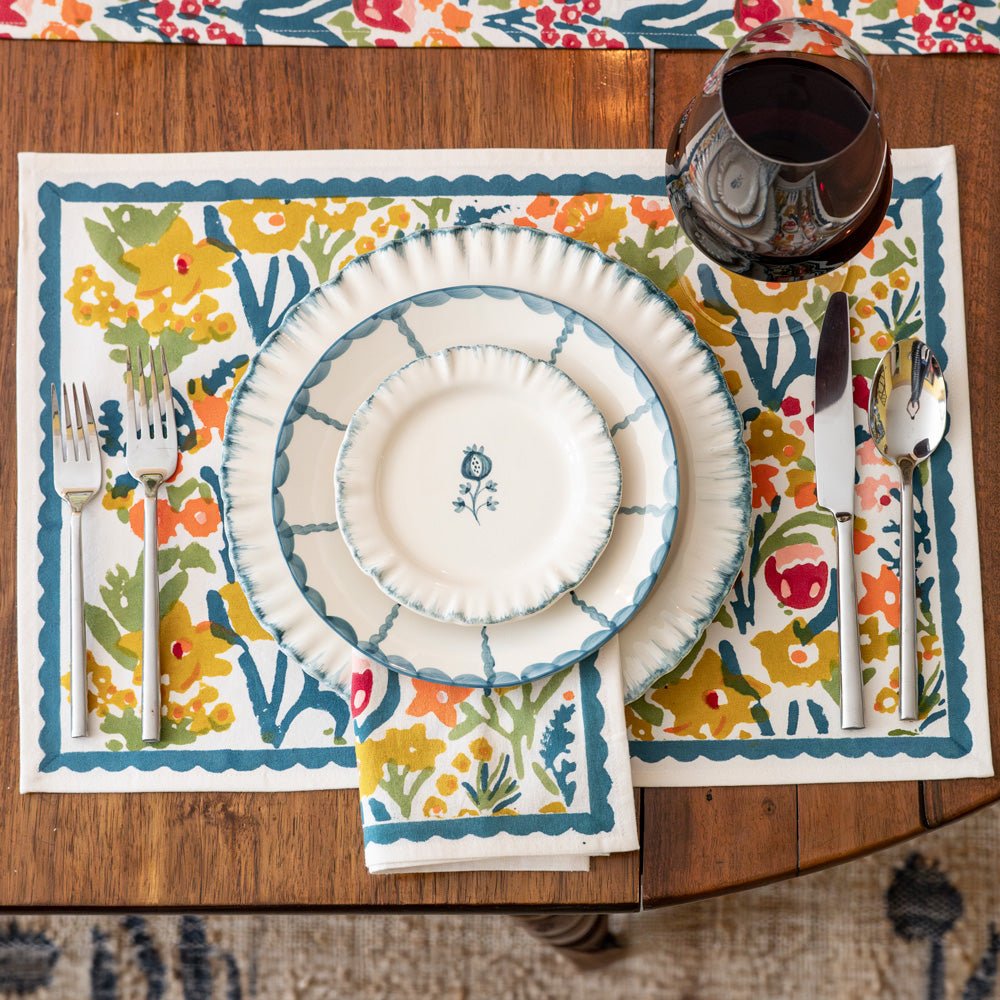 Brighten your table with these ruffled teal appetizer plates. The lively teal border, combined with the ruffled edges, offers a vibrant and modern twist to your table setting. Perfect for serving appetizers or tapas, this set of four plates is ideal for creating a fun and contemporary dining atmosphere.